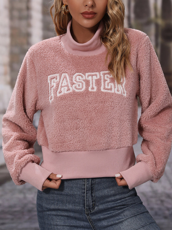 Alessandra Women's Round Neck Pullover Long Sleeve Letter Embroidered Ice Cream Pink Sweatshirt