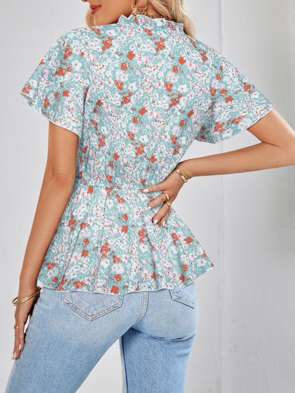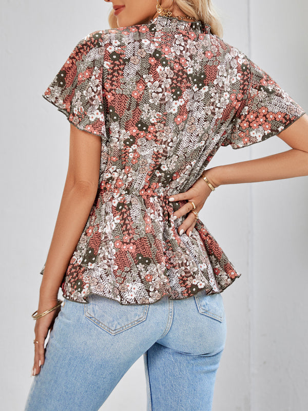 Perdita Casual V-Neck Waist Print European And American Top Women