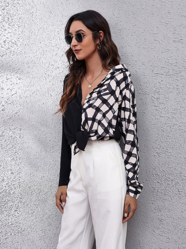 Emmerson Women's Plaid Stitched Bubble Sleeve Long Sleeve Shirt
