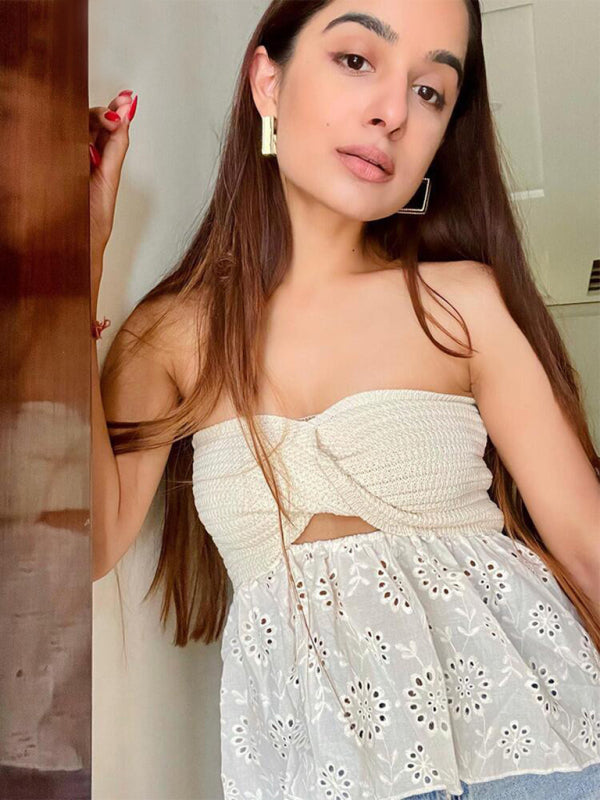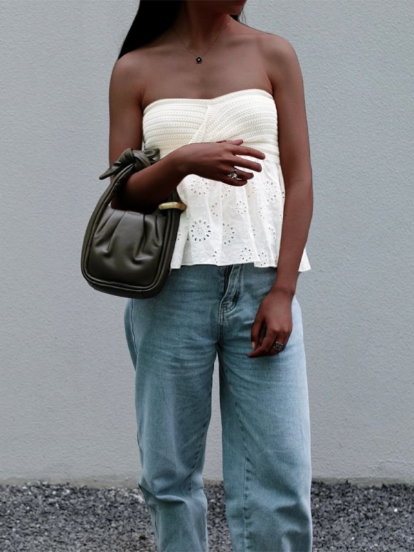 Ginevra Fashionable Casual Knitted Embroidered Stitching Holiday Sexy Tube Top