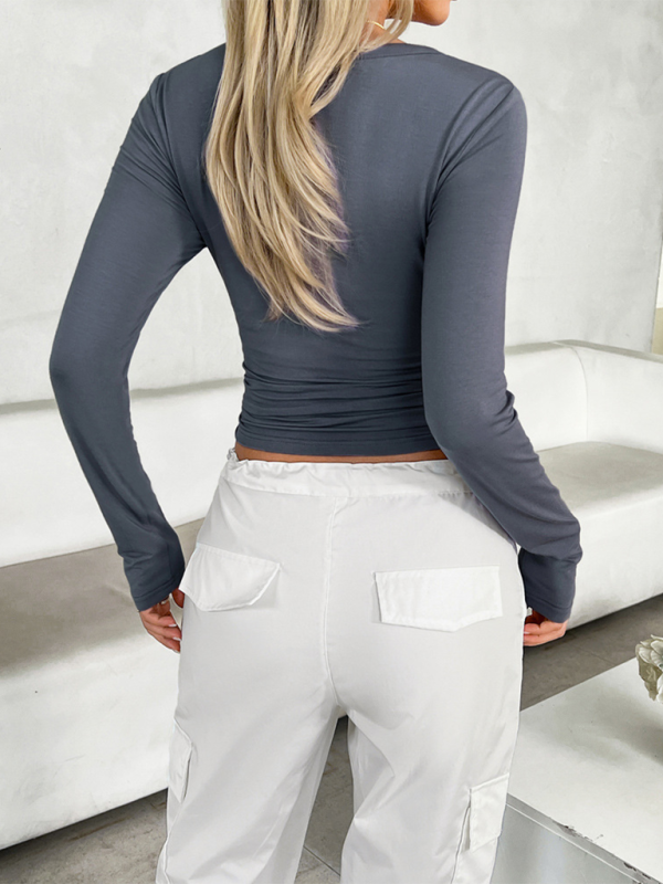 Grace Autumn And Winter Y2K Women's Slim Fit Solid Color U-Neck Long Sleeve T-Shirt