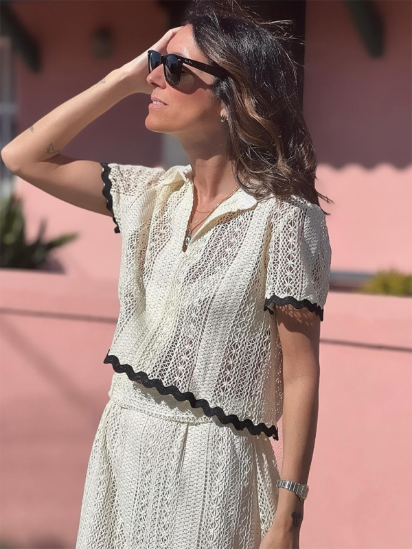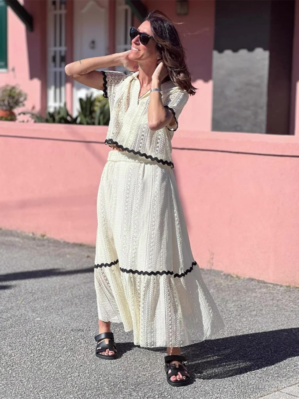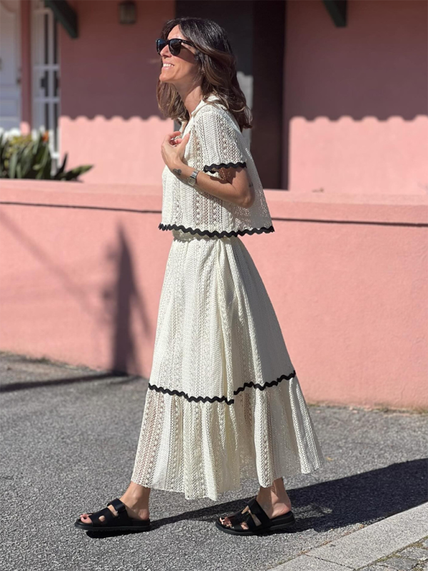 Jasmine New Women's Comfortable Casual Shirt Collar Lace Long Skirt Suit