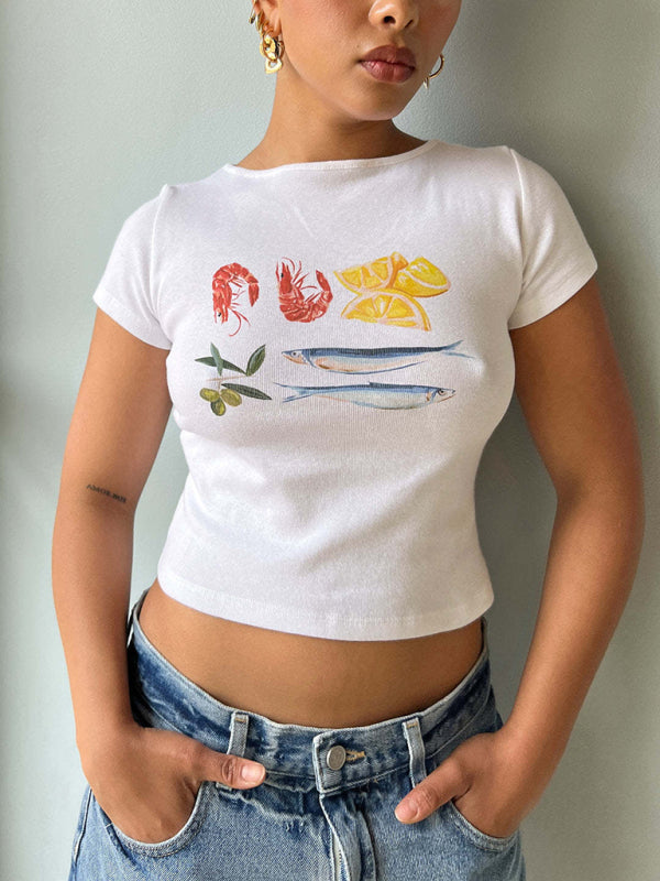 Kara Women's Graphic Fruit Print Y2K Short T-Shirt
