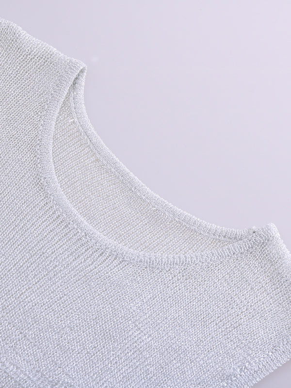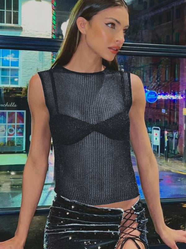 Kenna Fashion Round Neck Shiny Skinny Sexy Glitter Tank Top