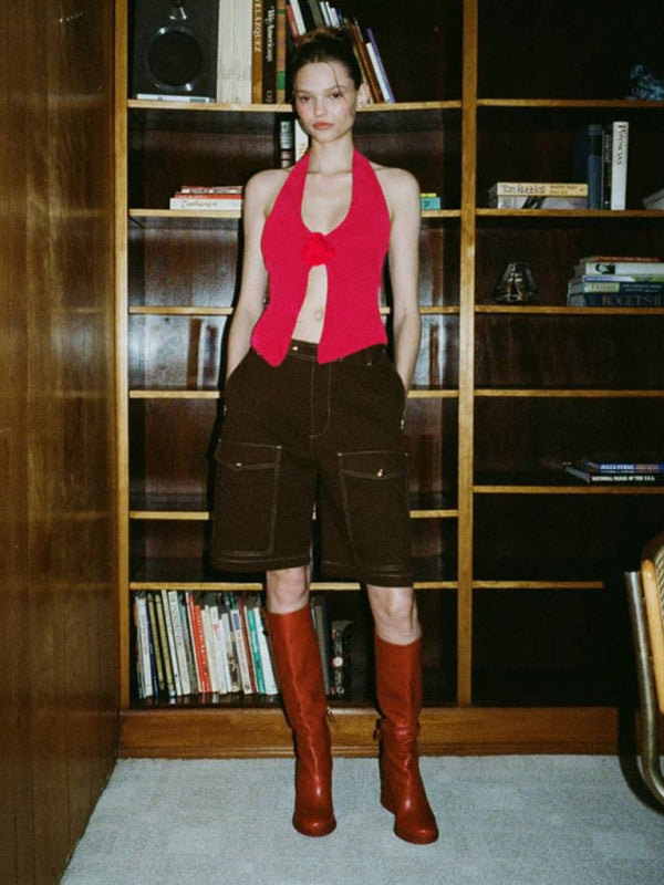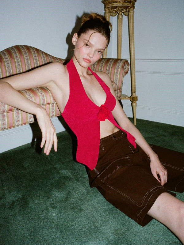 Keyla Women's Sexy Wool Halter Neck Rabbit Fleece Vest
