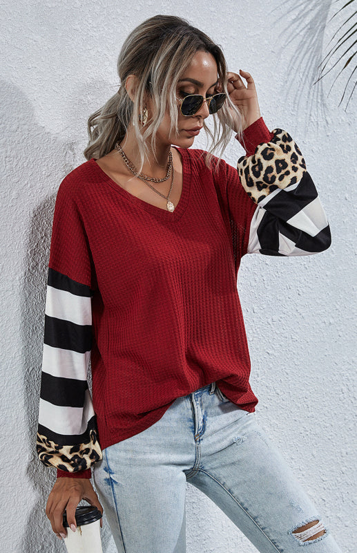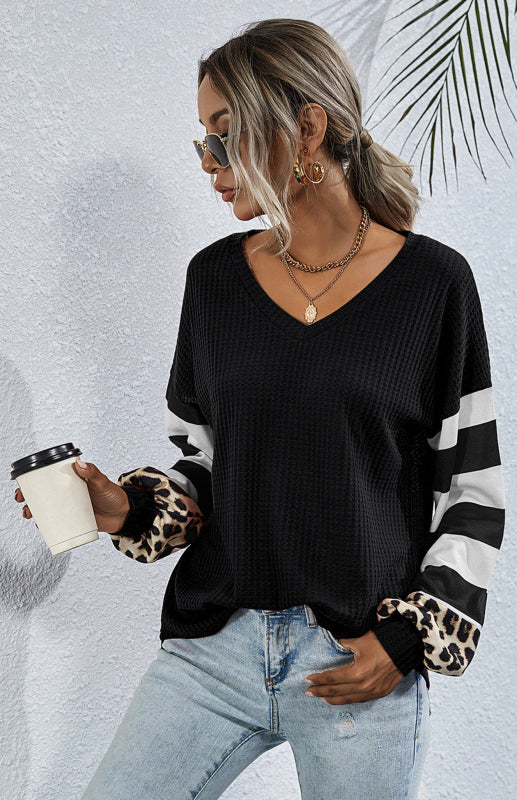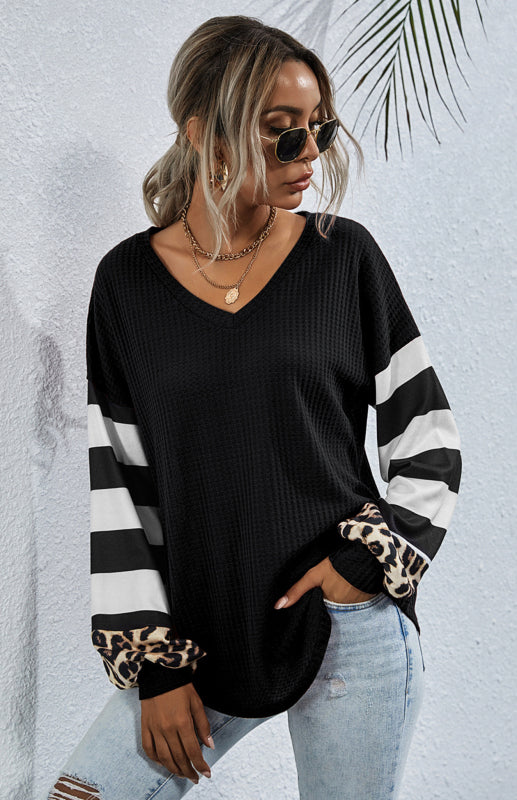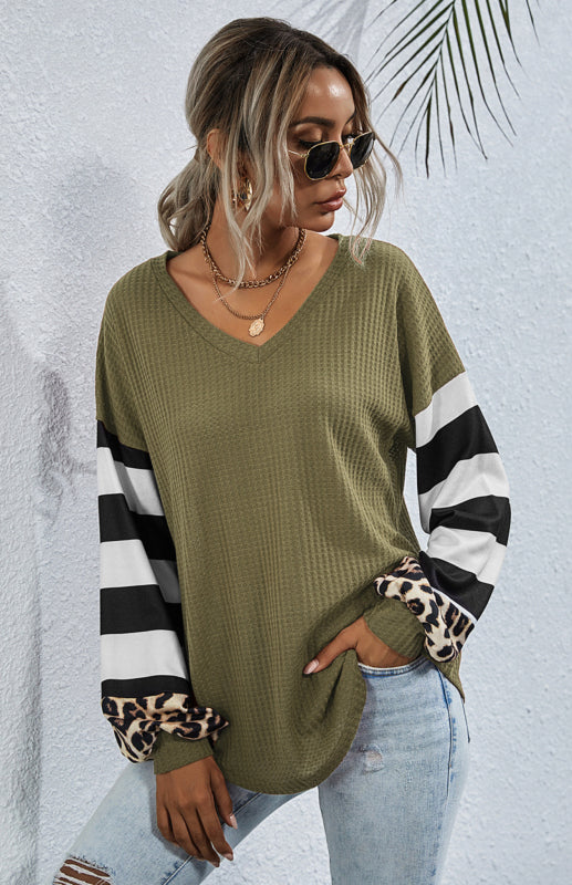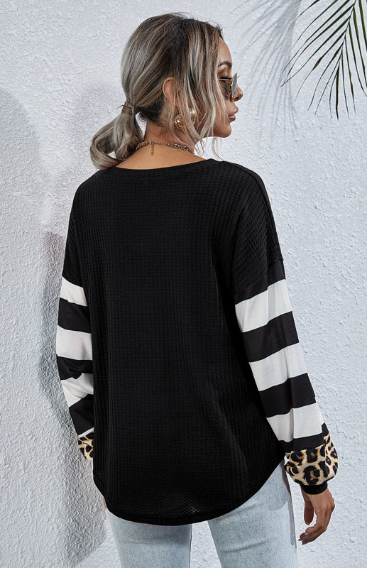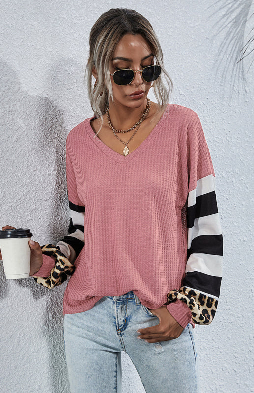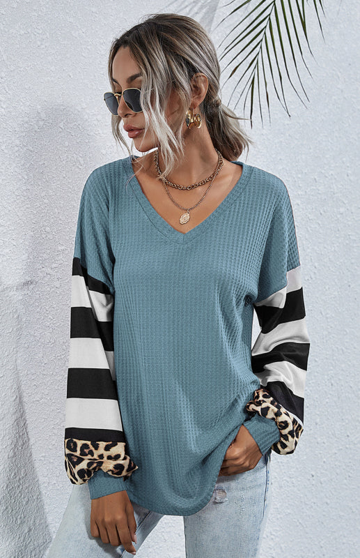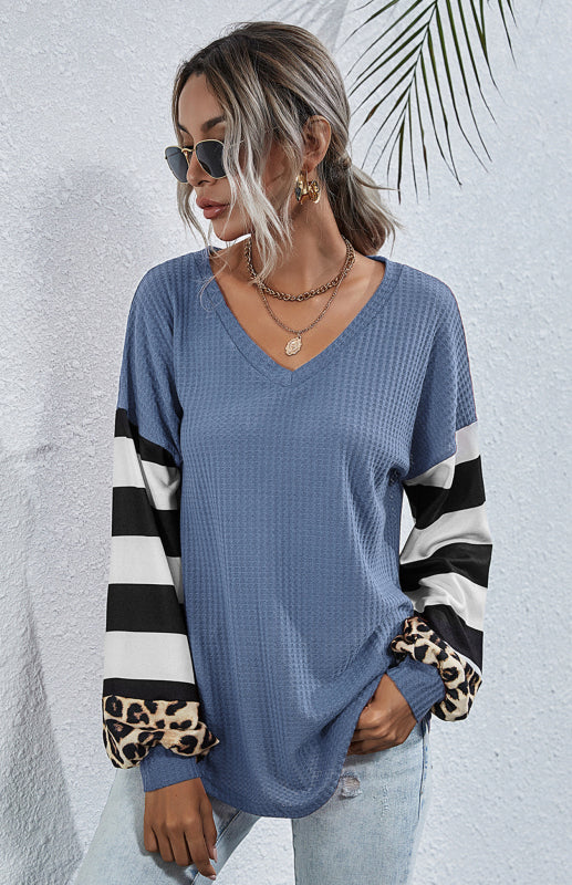 Krista Women's Striped Stitching Long-Sleeved T-Shirt