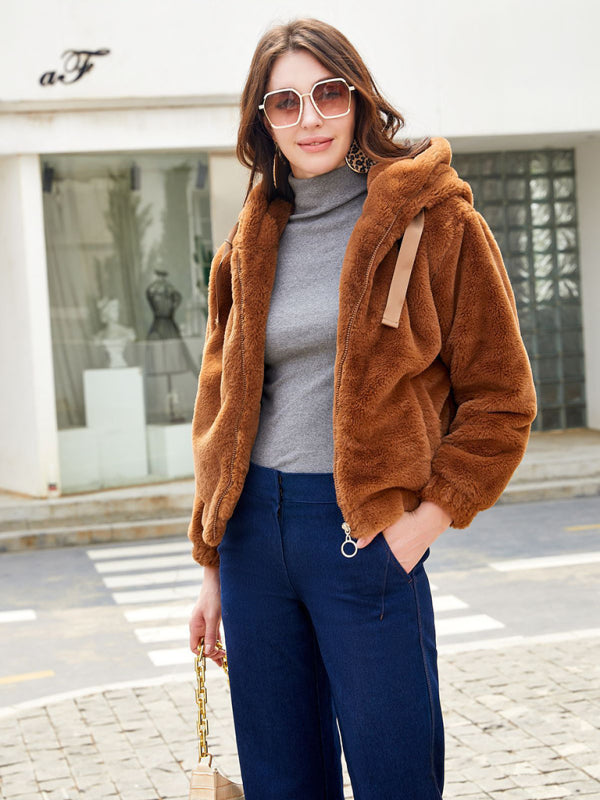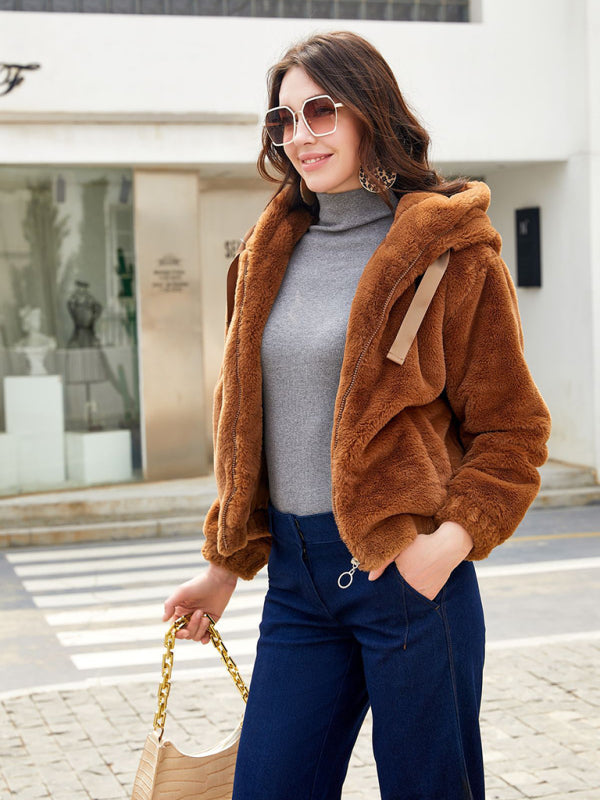 Lora Plush Hooded Long Sleeve Warm Short Jacket