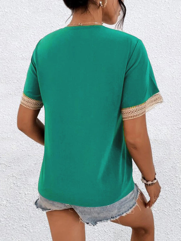 Marjorie Women's Solid V-Neck Lace Short-Sleeved Top