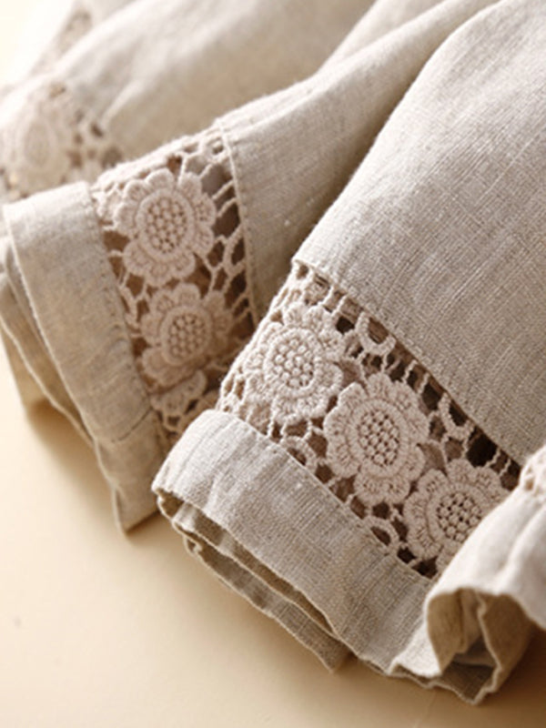 Mary Women's Woven Cotton Linen Hollow Lace Loose Shorts