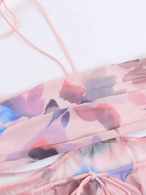 Meliora Women's New Color Matching Pleated Fashion Print Halter Neck Tube Top