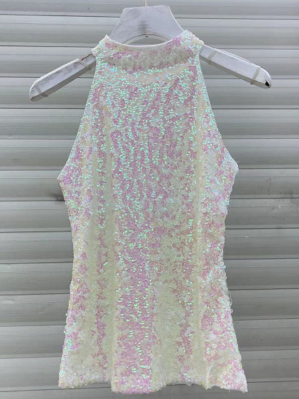 Rhea Women's New Fashion Sexy Sleeveless Slim Pullover Sequined Top