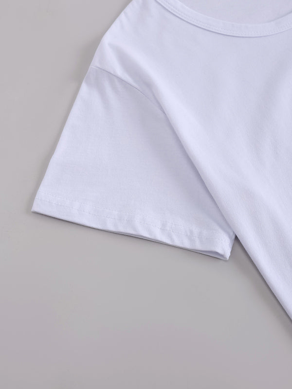 Rose Women's Knitted Round Neck Giraffe Print Short Sleeve T-Shirt